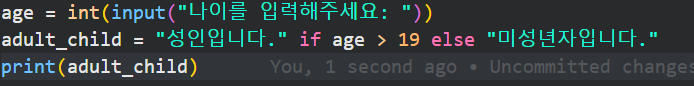 만약에 여러분 나이가 20이상이면 성인, 10 이상 20 이하는 청소년, 10이하는 어린이라는 조건을 주고 입력값에 따른 출력값을 출력해 봅시다.