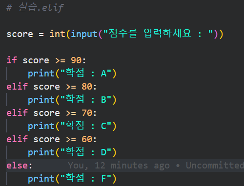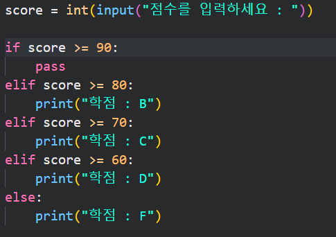 - elif문은 필요한 만큼 계속 작성해도 된다