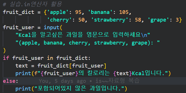 - 사용자로 부터 과일을 입력받아 해당 과일의 칼로리 출력