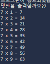- 단을 입력받습니다. ("몇단을 출력할까요?"