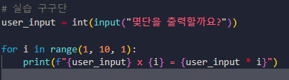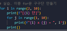 실습, 구구단 2~9까지 전체 출력을 해보고 마무리 하겠습니다.