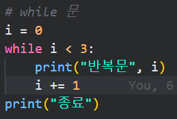 while 문이 코드 전체를 다루는 반복문이라고 하면 이 for문은 하나의 프로그램을 반복하는 구문정도로 알고 있으시면 됩니다.