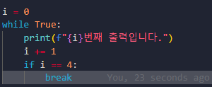자 이제 break 구문도 배울겸 무한루프 구문을 한번 만들어 봅시다.