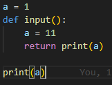 위 코드처럼 짠 후에 a를 출력할경우 무엇이 나올까요? 1 or 11?