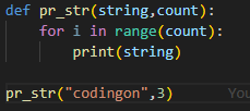 pr_str함수를 선언하고 pr_str("codingon",3)을 출력해 봅시다.