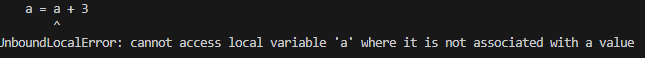 이 오류는 지역변수에 a값이 할당되지 않았다는 뜻입니다.