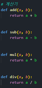 - 저번에 만들었던 합, 차, 곱, 나누기 함수를 모듈파일에 넣어주세요