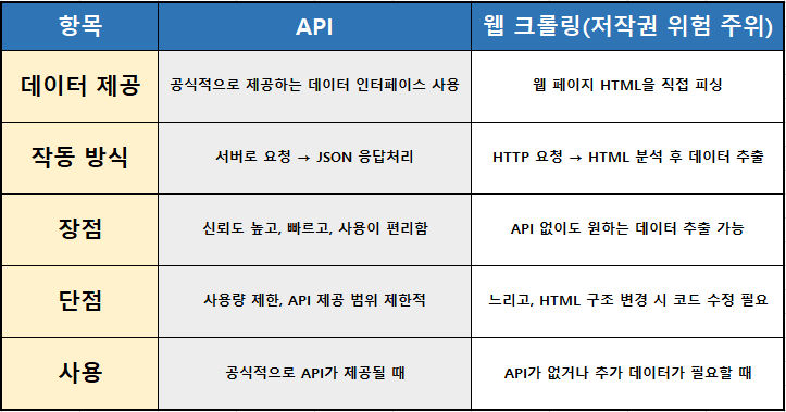 - 웹에서 데이터를 수집하는 방식에는 크게 두가지 방식이 존재