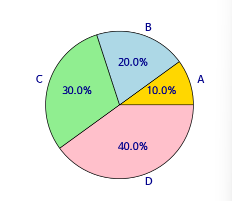 - wedgeprops : 각 섹션의 테두리 속성을 설정 (예:{'edgecolor' : 'black', 'linewidth' : 2})