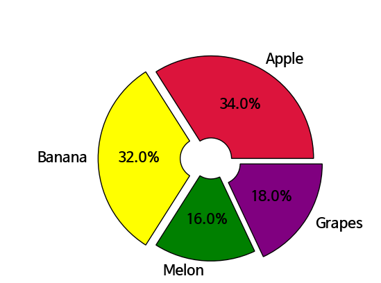 - explode : 특정 섹션을 강조하기 위해 섹션을 중심에서 떨어뜨림. [0.1, 0, 0, 0]처럼 배열로 전달합니다.
