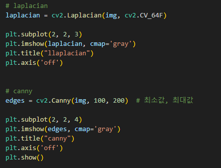 - sovbel, laplacian, canny를 모두 사용해볼것