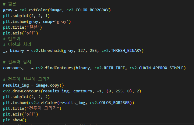 - 컨투어 그리기 : cv2.drawContours를 활용