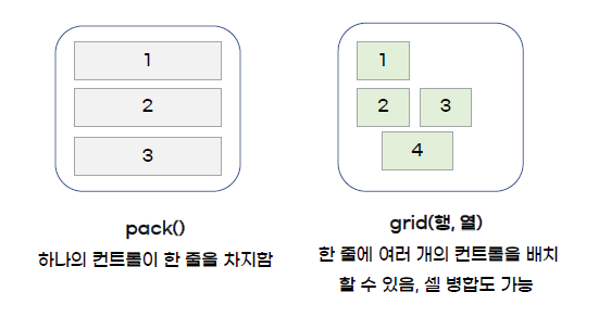 - 루트 윈도우(Root Window): 모든 GUI 프로그램은 기본적으로 하나 이상의 윈도우가 필요합니다.