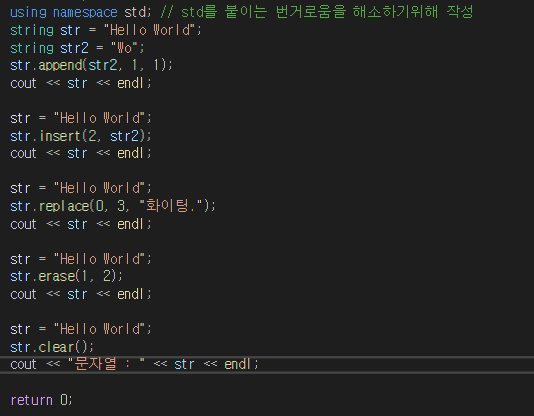 - .erase(n, m) : n index부터 m개의 문자열을 지움