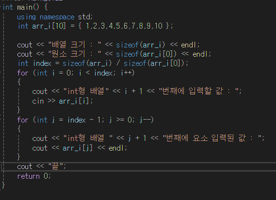 - 위 코드에서는 배열의 크기와 각 요소의 크기를 사용하여 반복문을 설정