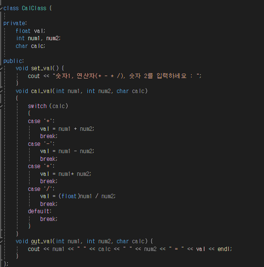 - 보통 set_val영역은 value의 값들을 초기화 하는데 사용합니다. private의 인수를 바로 사용하여도 되지만, 나중에 코드가 길어질 경우 값이 뒤죽박죽이 되어 원하는 결과 같이 나오지 않으므로 다음과 같이 set_val을 선언하여 중간 중간에 선언하여 값을 초기화해 줍니다.