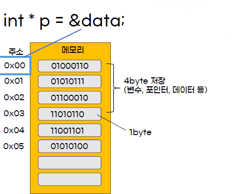 pointer = &num // pointer에 num의 메모리 주소를 저장함.