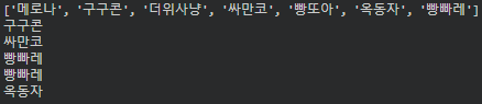 목록이라는 뜻에 이 list자료형은 말그대로 리스트라는 함수안에 우리가 원하는 목록을 생성하는 것입니다.