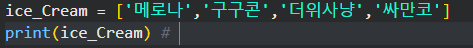 선언할 리스트명 = [넣,고,싶,은,목,록]