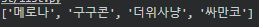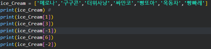 아!! index번호의 순서는 1부터가 아닌 0부터 시작이라는 것과 음수는 목록에 끝부터 시작인것을 알수 있습니다.