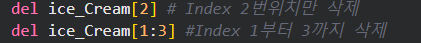 이 추가/삭제 매서드는 거의 모든 목록 자료형에서 쓰기 때문에 알아두시면 차후에 매우 편리합니다.