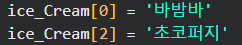"list명"[바꾸고 싶은 인수의 index번호] = "수정된 내용"